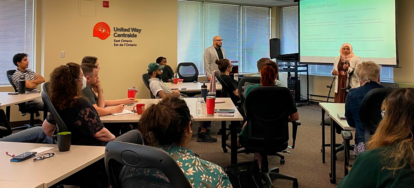 L’équipe de Centraide a récemment collaboré avec SAFE (Strategies for Advocacy, Freedom, and Empowerment) dans le but d’organiser une formation à l’intention des leaders communautaires qui leur permettrait d’agir efficacement, proactivement et en toute sécurité, au moyen de stratégies pratiques, plutôt que de ne rien faire dans des situations haineuses ou discriminatoires.