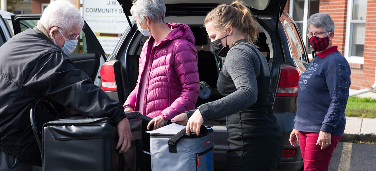 Les bénévoles continuent de livrer de la nourriture, des repas et des articles essentiels aux aînés isolés, puis d’effectuer des vérifications de bien-être par téléphone pour que les personnes les plus vulnérables de nos communautés ne soient pas laissées pour compte.