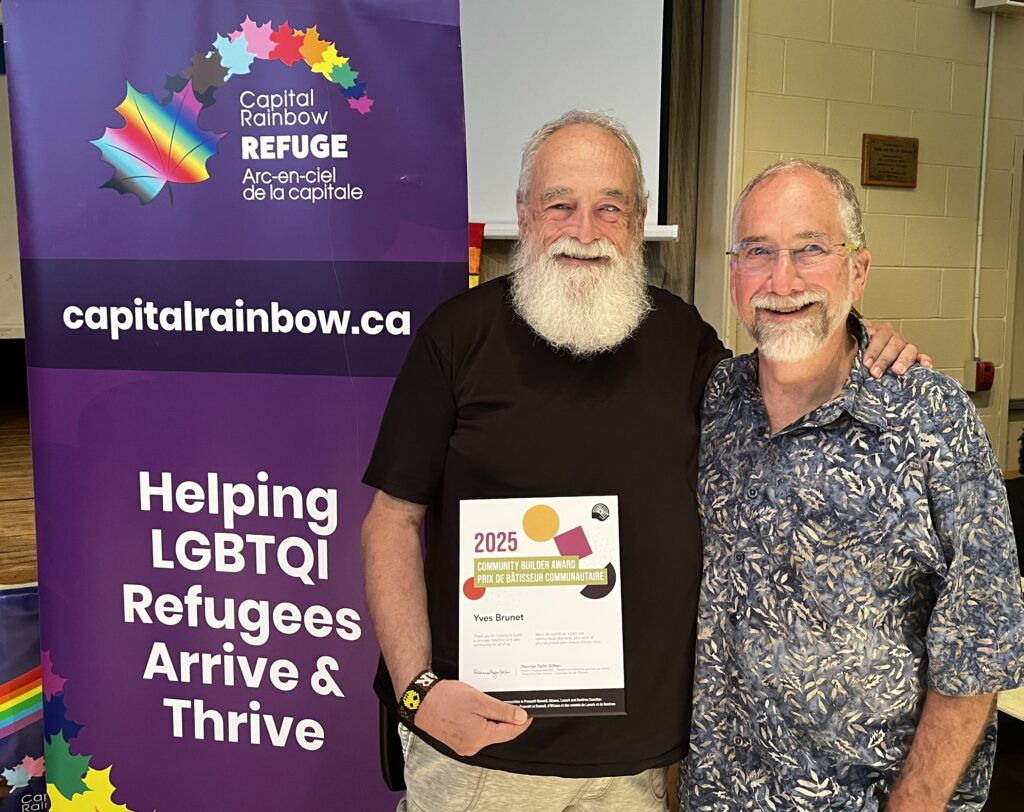 Après avoir parrainé ces trois activités dans la région, nous avons conclu le mois de juin en remettant un Prix de bâtisseur communautaire à Yves Brunet, du Refuge arc-en-ciel de la capitale, qui ne s’y attendait pas du tout!