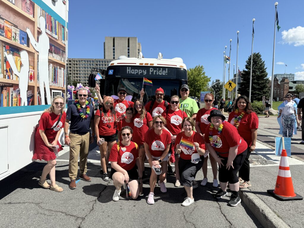 Nous avons donné le coup d’envoi de la saison des Fiertés à Smiths Falls, le 6 juin 2025, en participant à la cérémonie de lever du drapeau de la Ville et la fête de rue « Pink Pony Pride », deux activités organisées par Smiths Falls Pride.