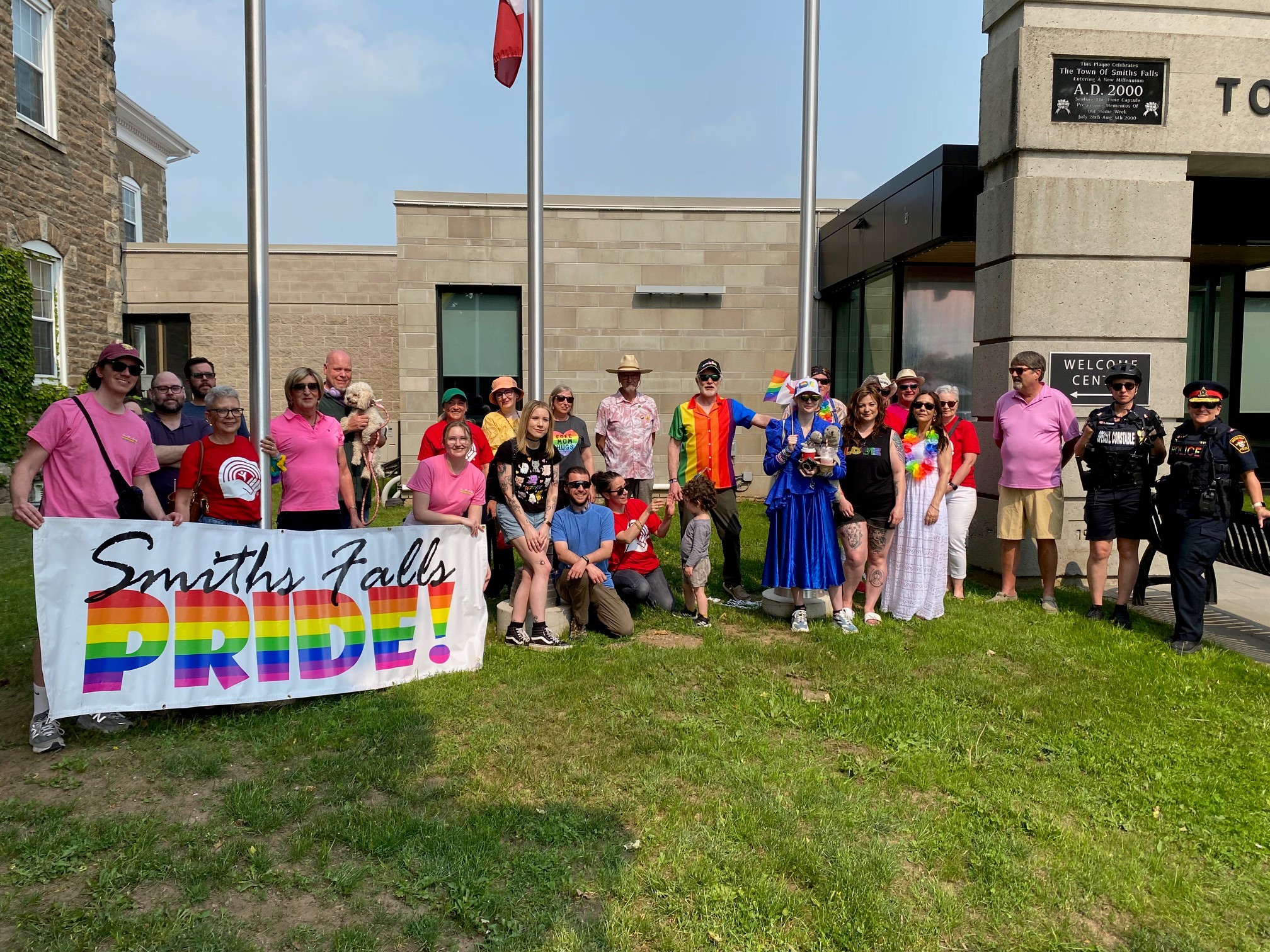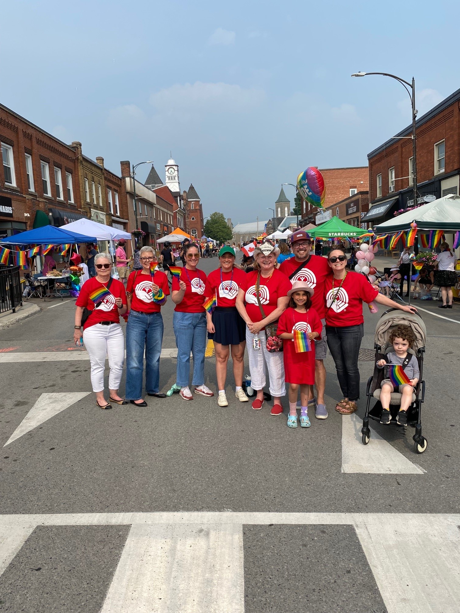 Nous avons donné le coup d’envoi de la saison des Fiertés à Smiths Falls, le 6 juin 2025, en participant à la cérémonie de lever du drapeau de la Ville et la fête de rue « Pink Pony Pride », deux activités organisées par Smiths Falls Pride.